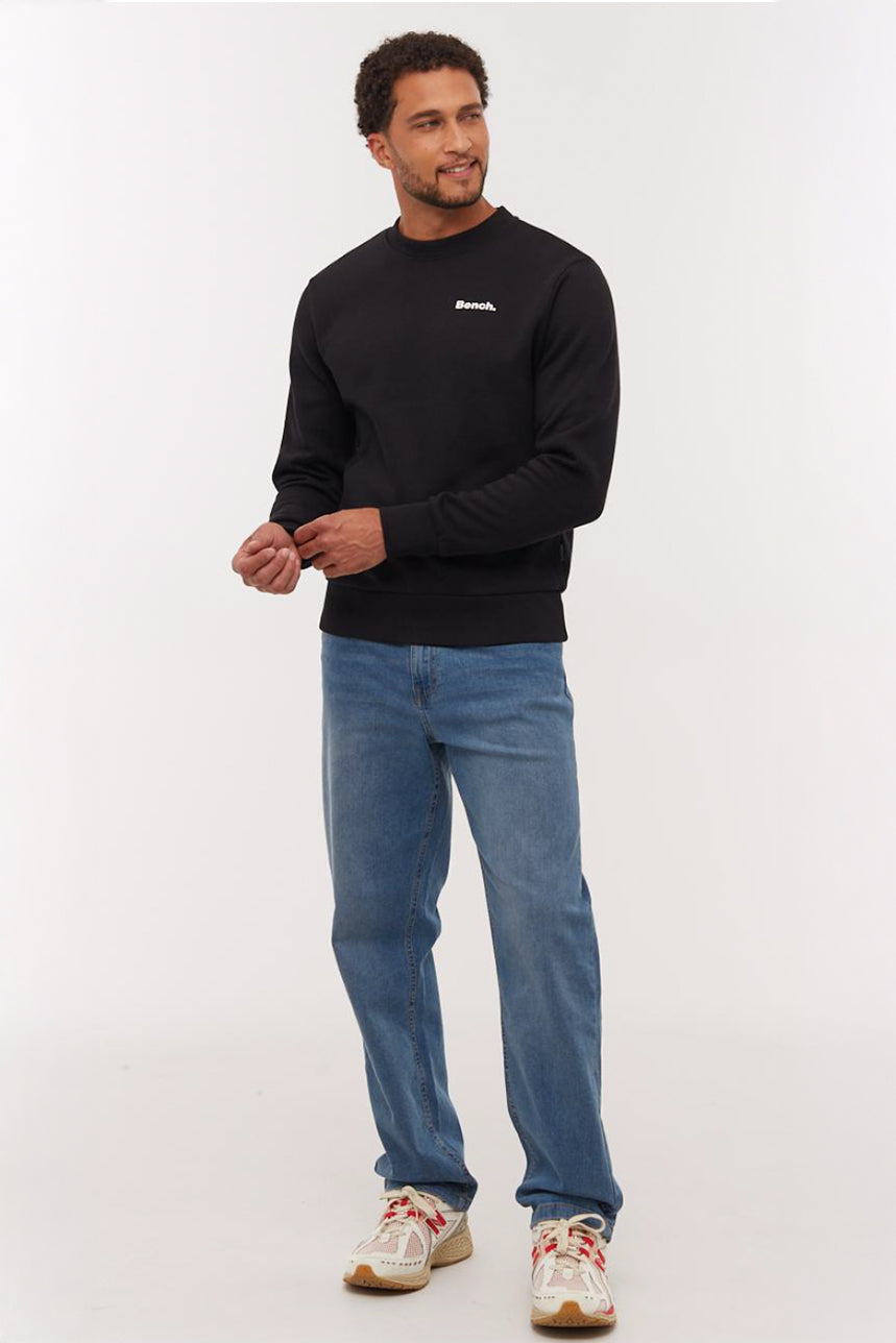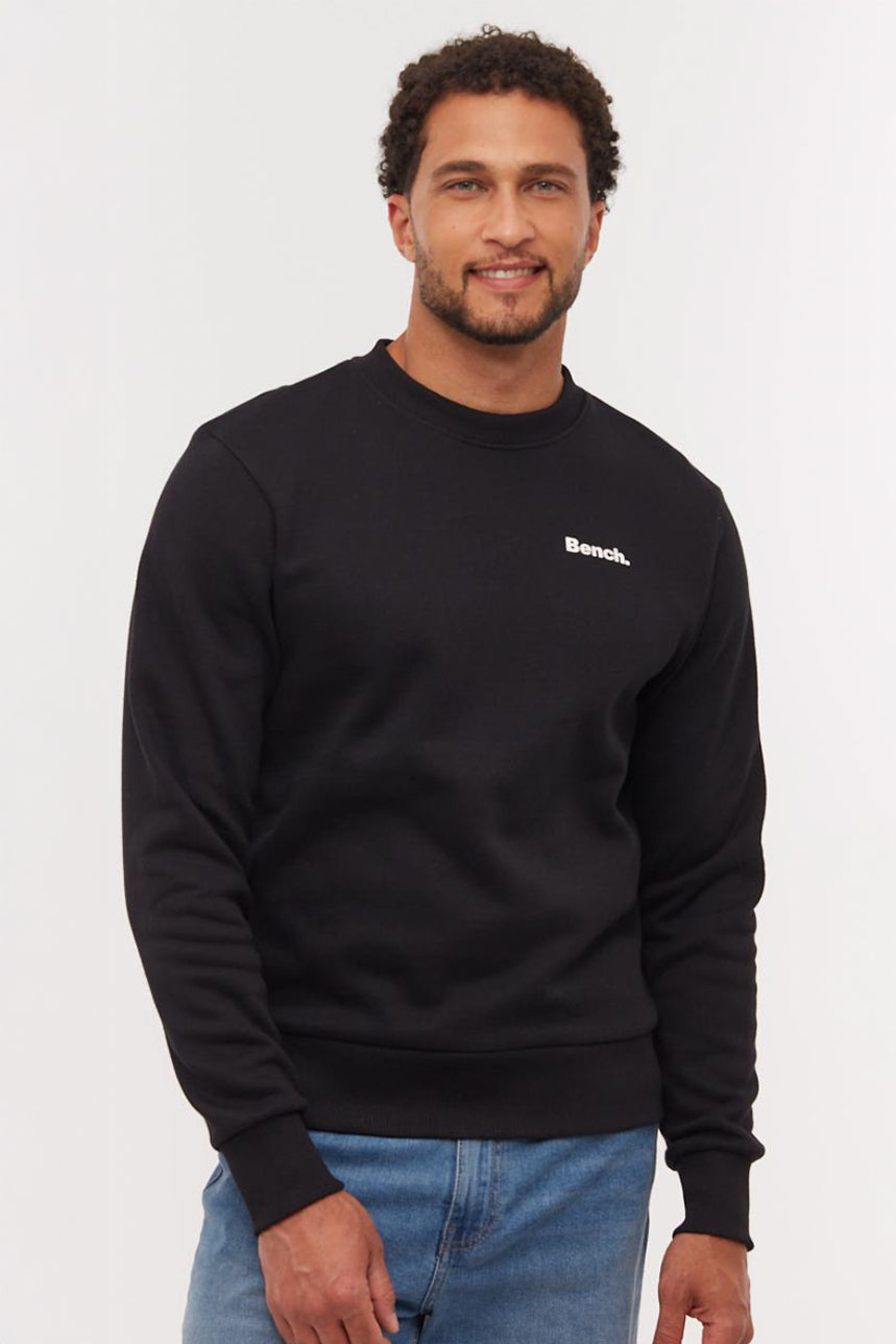 Le chandail noir avec logo Bench affiche une coupe régulière confortable, parfaite pour un usage quotidien. Il est doté d’un col rond classique et de manches longues, agrémentées de bordures côtelées pour une finition soignée. Confectionné en coton ouaté doux et extensible, il allie confort, chaleur et liberté de mouvement, tout en mettant subtilement en avant le logo Bench pour un style simple et reconnaissable.