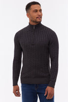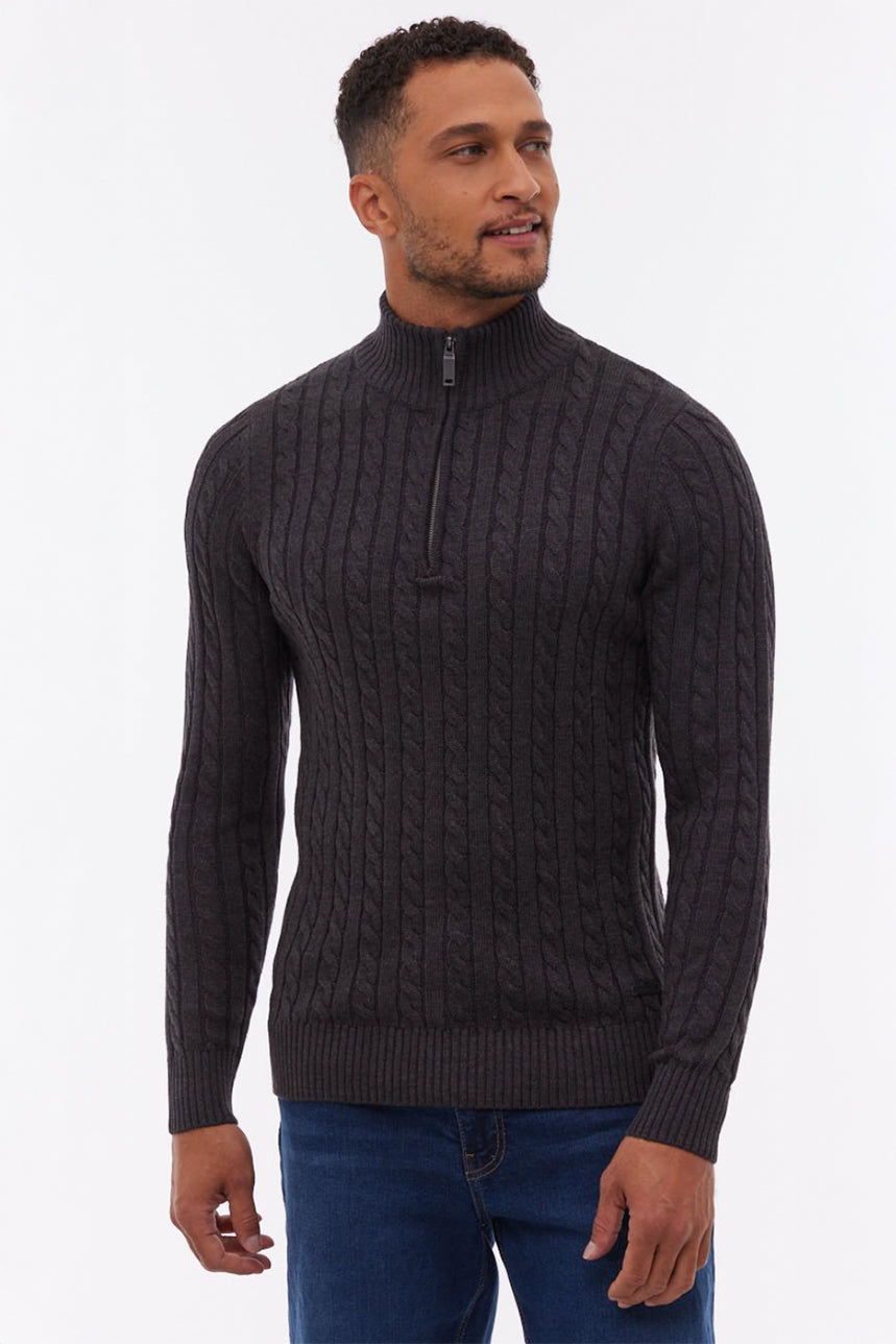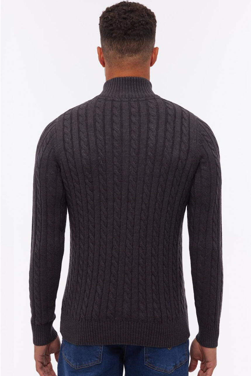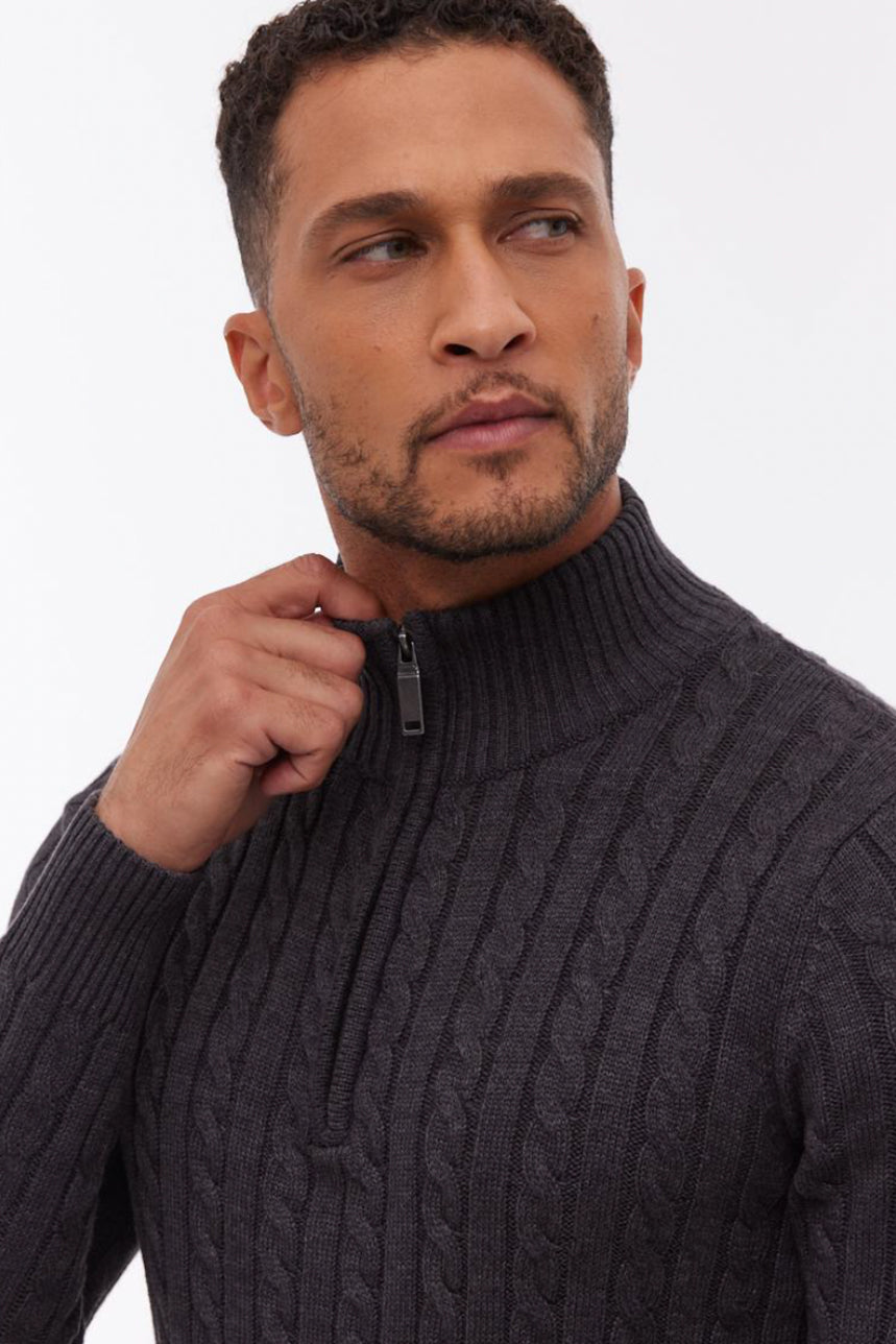 Le chandail en tricot cable à fermeture éclair au col