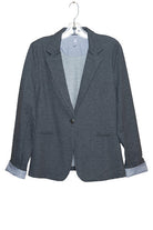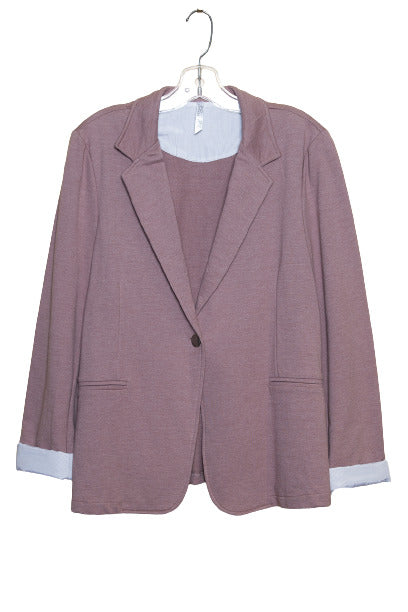 Blazer uni 1 bouton pour femme. Revers contrastant aux poignets.