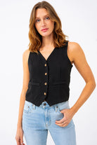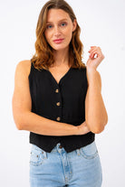 Cette veste courte sans manches apporte une touche élégante et structurée à toutes vos tenues. Sa coupe régulière et son col en V créent une silhouette soignée et intemporelle, tandis que ses quatre boutons effet bois et ses fausses poches ajoutent une note de style raffinée. Conçue dans une matière texturée et confortable, elle se distingue également par sa doublure contrastante, subtilement pensée pour peaufiner chaque détail. Polyvalente et facile à superposer, cette pièce est idéale pour rehausser un look décontracté ou compléter une tenue plus habillée.