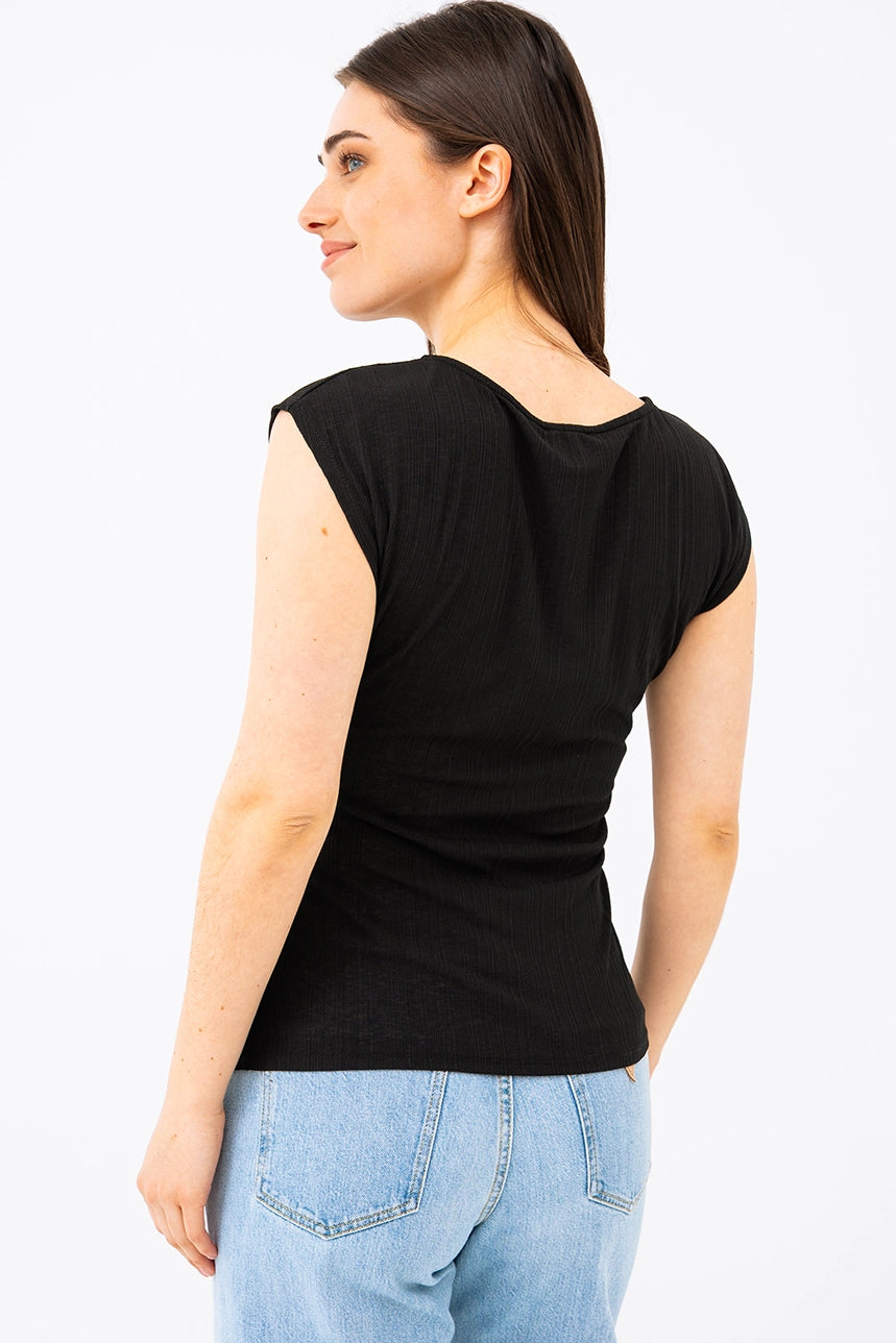 Un basique revisité pour un look féminin et confortable. Ce t-shirt à coupe ajustée met en valeur la silhouette avec ses fronces latérales délicates. Son tissu texturé extensible et léger assure un confort optimal, parfait pour tous les jours.