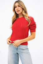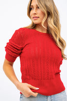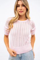 Ce chandail à manches courtes en tricot ajouré offre une coupe ajustée qui flatte la silhouette, tout en assurant confort et légèreté grâce à sa matière extensible 100 % coton. Son col rond classique, ses élégants volants aux manches et ses bordures côtelées lui confèrent une allure féminine et raffinée, idéale pour les journées douces. Facile d’entretien, il se lave à la machine à l’eau froide et se sèche à plat pour préserver sa forme et sa texture délicate.