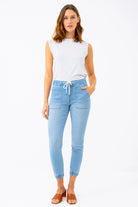 Alliez style et fonctionnalité avec le jeans jogger – Modèle Jade, une pièce polyvalente pensée pour un quotidien actif sans compromis sur le look. Sa taille régulière et sa matière extensible assurent un confort optimal, tandis que sa cheville élastique lui donne une touche sportive et actuelle.