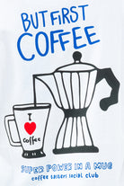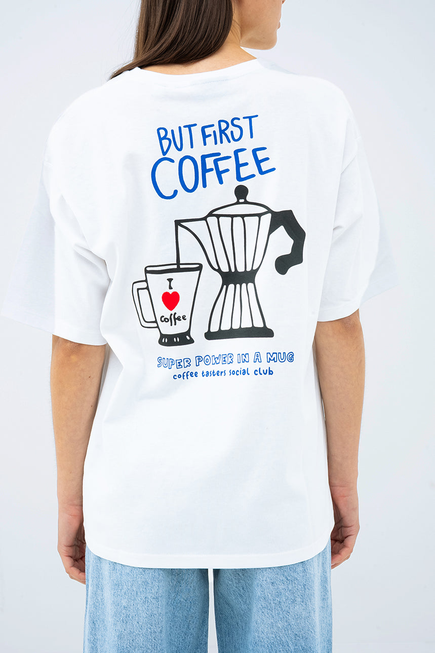 Avec son message plein d'humour et son style décontracté, le t-shirt imprimé "But First Coffee" est un clin d’œil parfait aux amateurs de café. Sa coupe boxy, son col rond et ses manches courtes créent une silhouette moderne et décontractée, idéale pour les journées relax. Confectionné dans une matière fluide et confortable, il se porte aussi bien avec un jean qu’un short ou une jupe pour un look cool et sans effort.