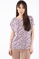 Blouse pour femme à manches courtes, de la marque B.Young. Motif de fleurs abstraites. Tissu super léger et fluide pour être confortable en tout temps. Ouverture au dos avec bouton. Agencez cette blouse colorée pour femme à votre jupe ou pantalon préféré pour un look de tous les jours impeccable.