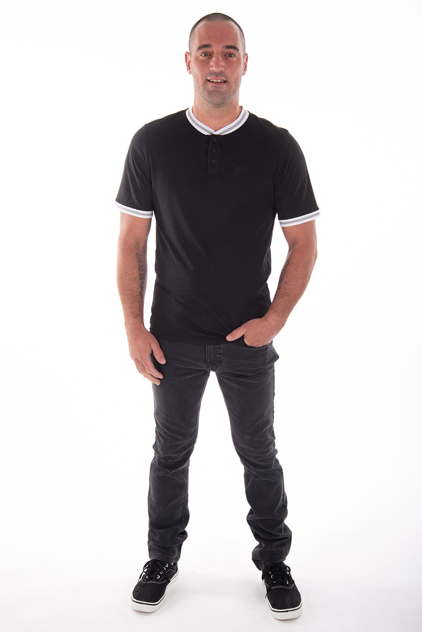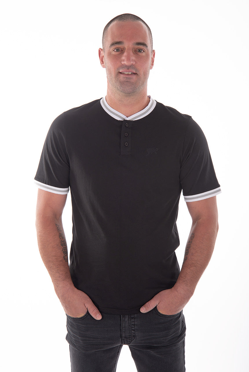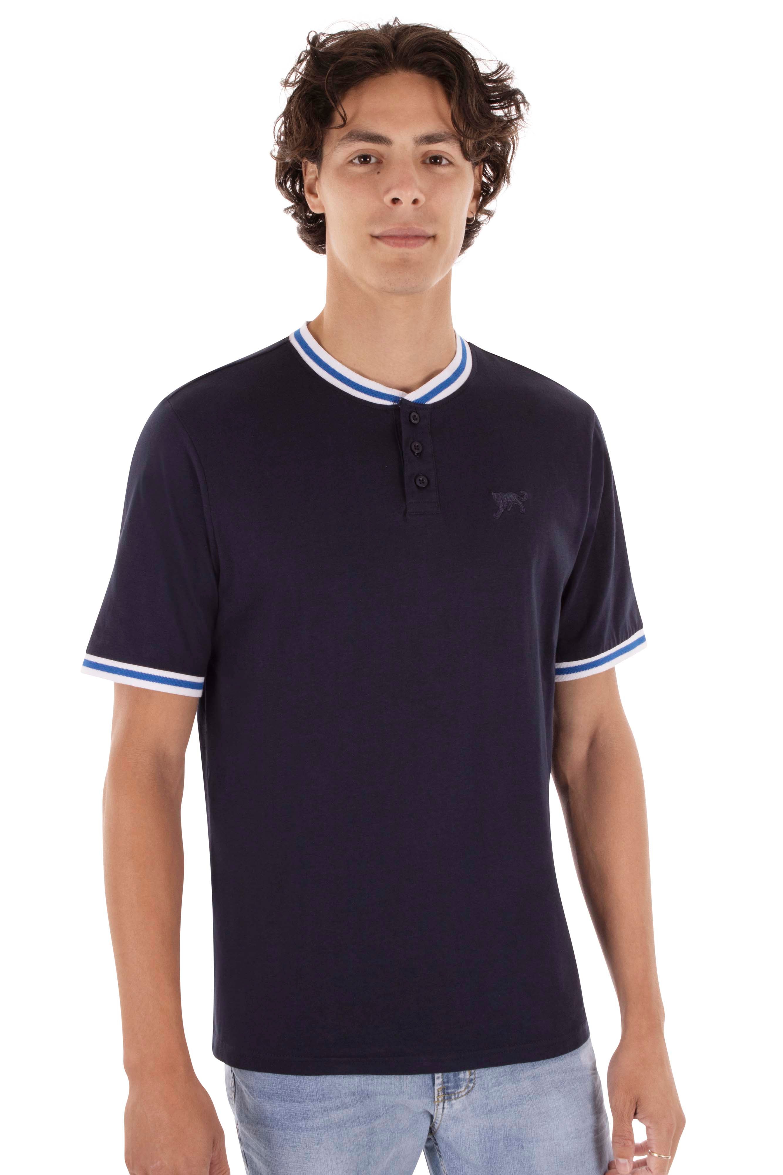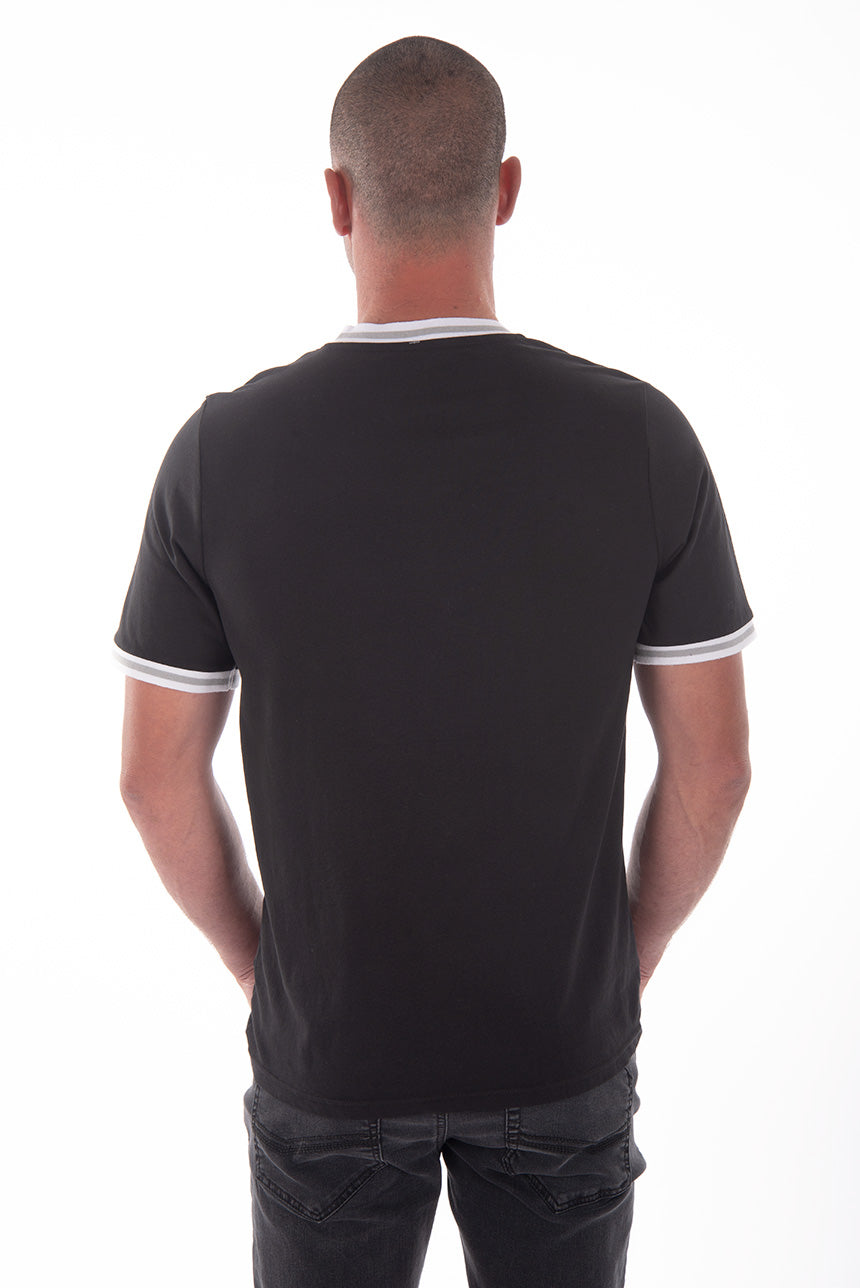 T-shirt uni avec rayures en contraste au col et aux manches. Félin ton sur ton brodé à l'avant. Tissu doux, confortable et extensible. Ce t-shirt pour homme sera un allié de vos looks tout-aller cette saison !
