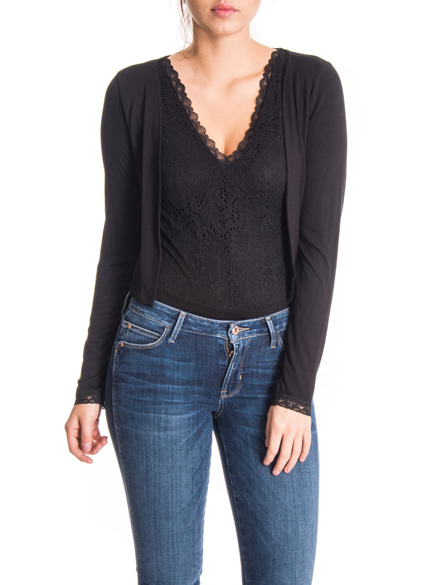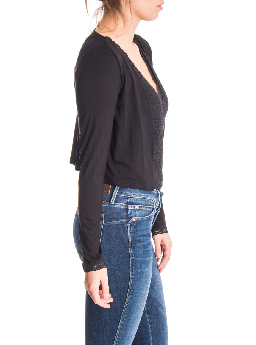 Cardigan court avec dentelle aux manches