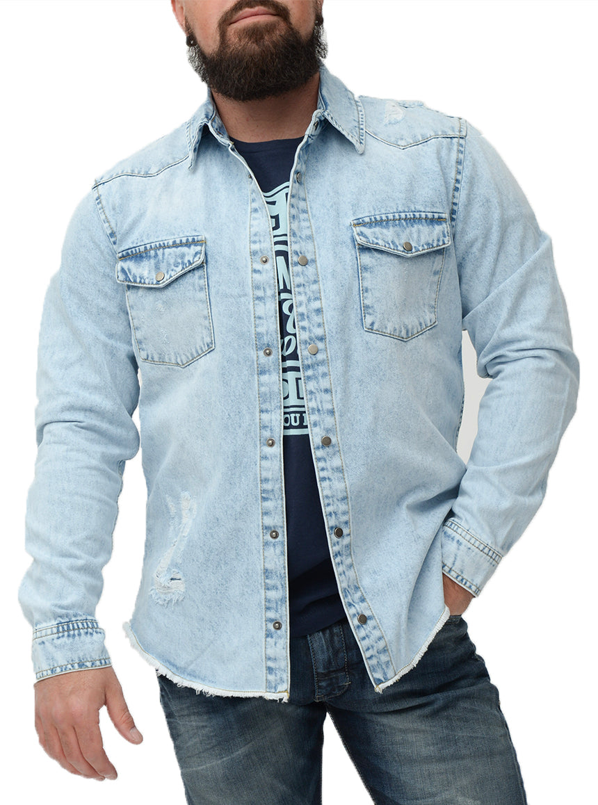 Chemise pour homme en denim. Se porte autant ouverte que fermée. Boutons pressions au devant et aux manches. S'agence parfaitement avec tous nos pantalons, bermudas et capris.