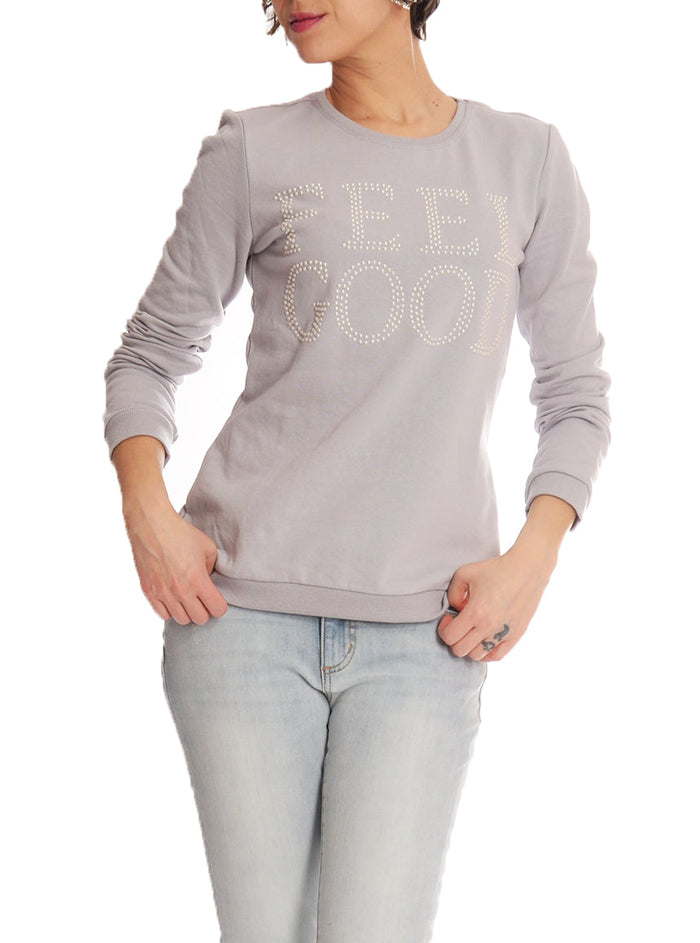 Chandail « FEEL GOOD » ou « BE HAPPY », avec perles | 2 couleurs